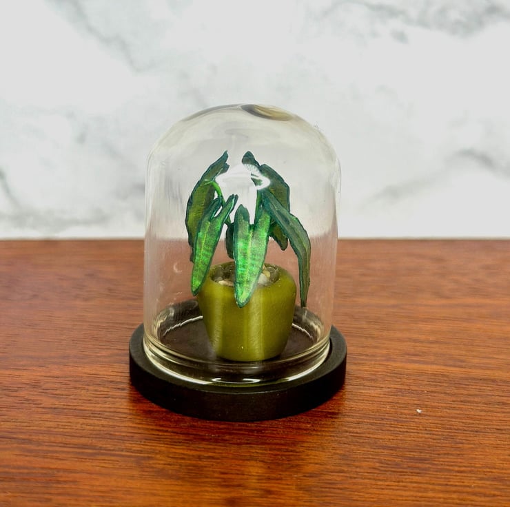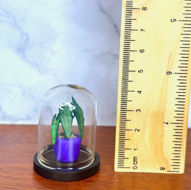 Introduce a touch of elegance to your dollhouse or home decor with this exquisite handmade miniature paper plant in a glass cloche. Each piece is a tiny work of art, meticulously crafted to capture the beauty of real plants, encased in a delicate glass dome. Perfect for collectors, plant enthusiasts, or anyone seeking a unique and thoughtful gift.