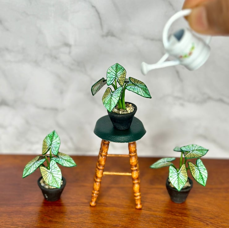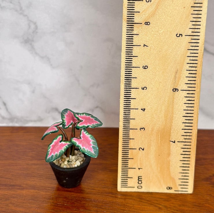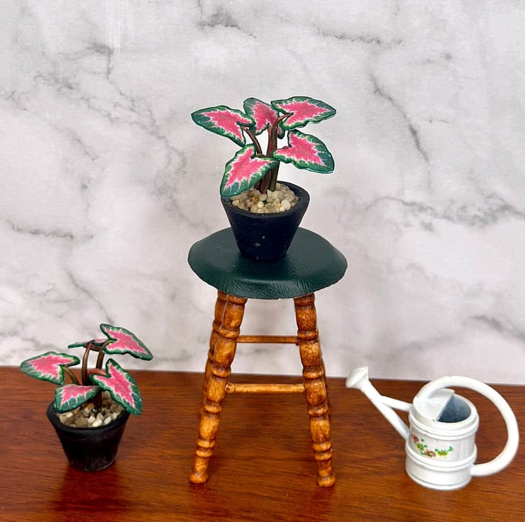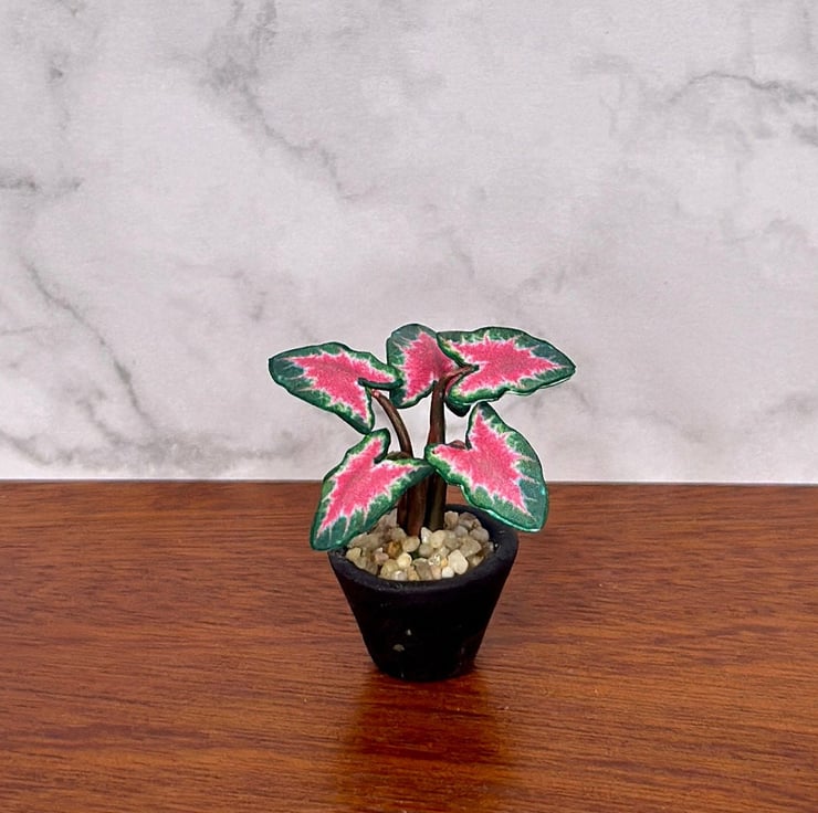 The Caladium plant, known for its vibrant, heart-shaped leaves, has always inspired me with its mix of bold colors and delicate veins. Symbolizing joy and creativity, it adds a lively touch to any space. I wanted to capture its beauty in miniature form, perfect for dollhouse enthusiasts and collectors.