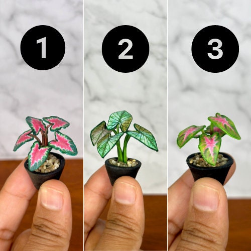 Transform your dollhouse or home decor with these stunning handmade miniature paper Caladium plant varieties. Each plant is a miniature masterpiece, crafted with love and attention to detail, capturing the vibrant beauty of real Caladium. Perfect for collectors, plant enthusiasts, or anyone searching for a unique and thoughtful gift.