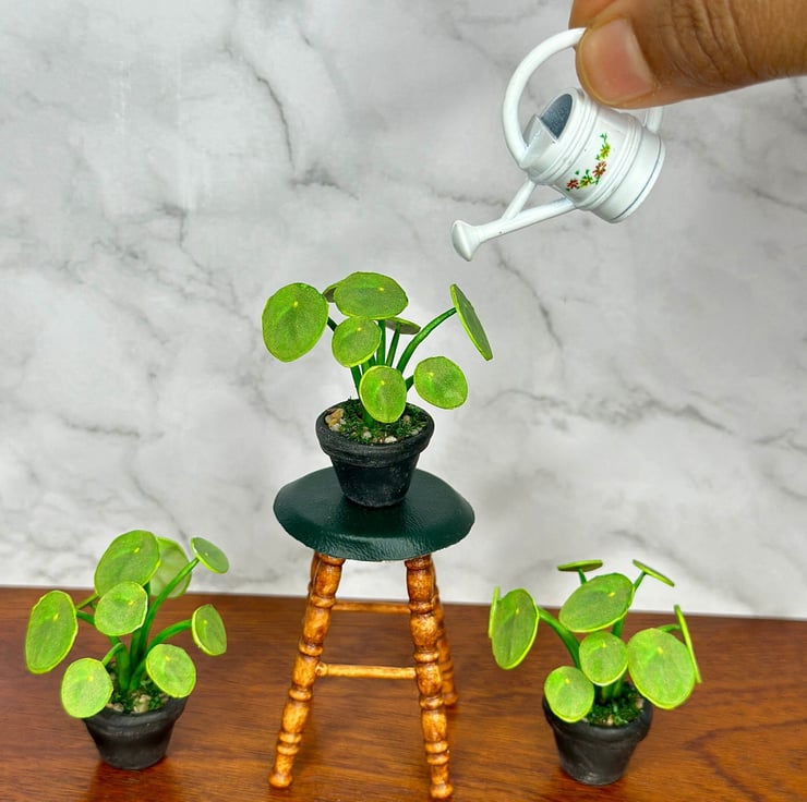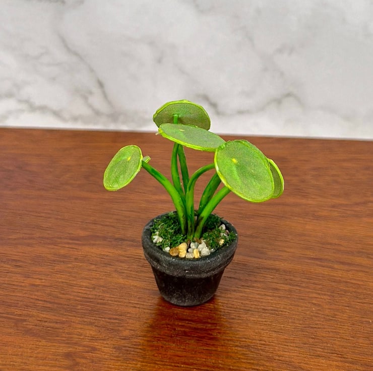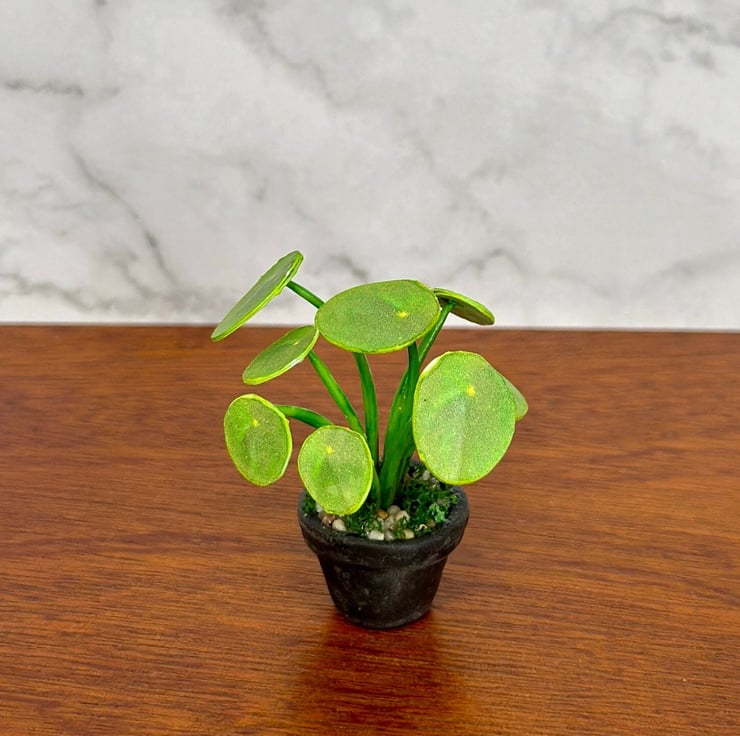 "The Pilea, also known as the 'Chinese Money Plant,' is a symbol of prosperity, good luck, and positive energy. I’ve always loved its round, coin-shaped leaves and the way it brightens up any space. Inspired by its charm, I wanted to create a handmade miniature Pilea plant—a tiny yet lifelike version that captures the beauty of the real plant in a form that lasts forever."