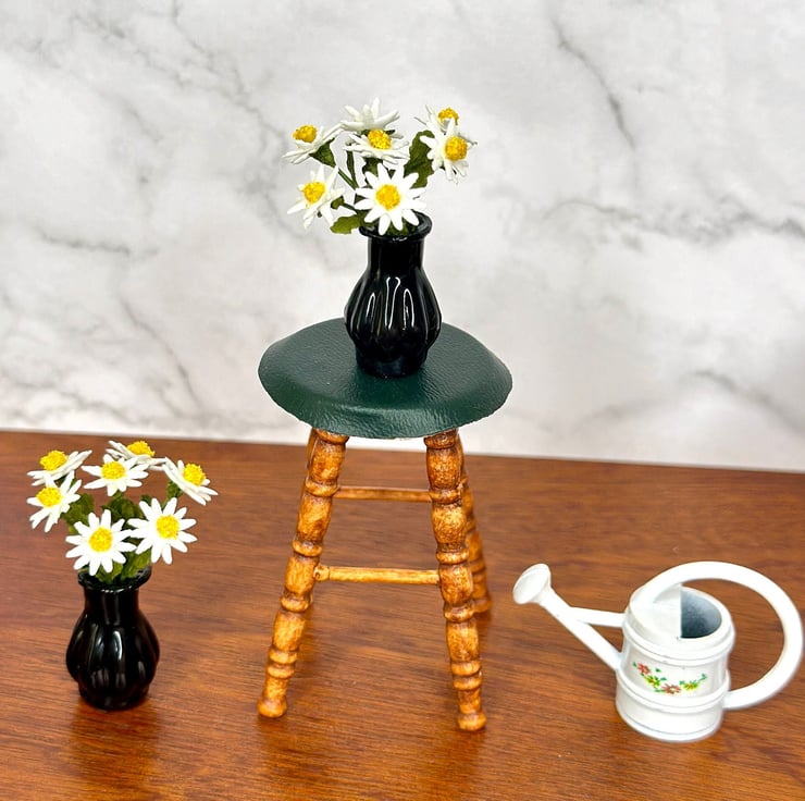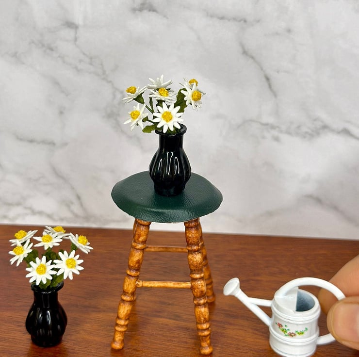 "I love working on miniatures because they bring the joy of nature into small spaces. This tiny daisy arrangement is a piece of everlasting sunshine, bringing warmth and elegance to any setting, without the need for watering!"