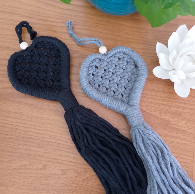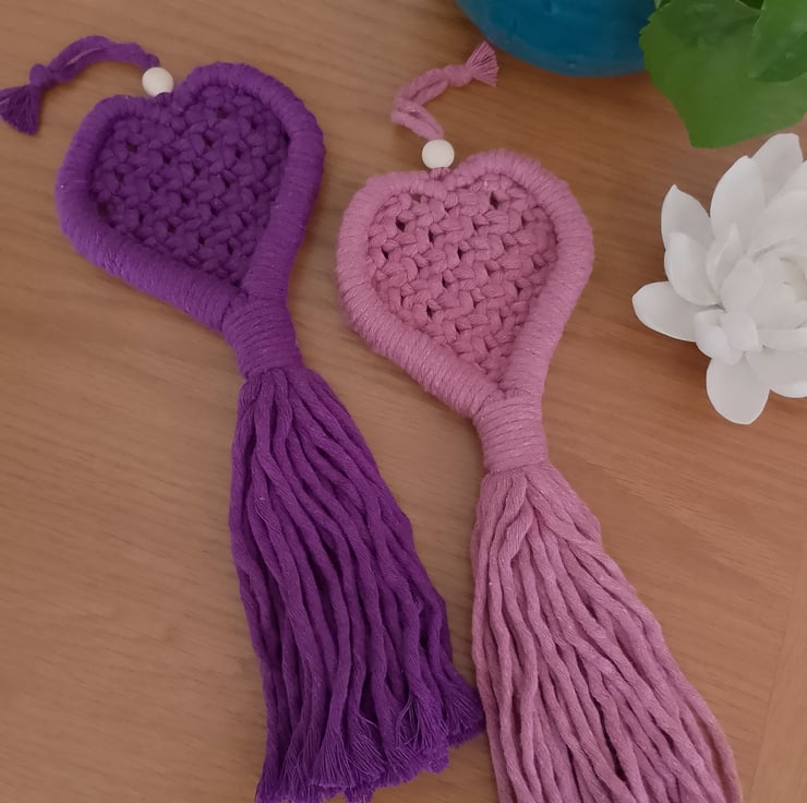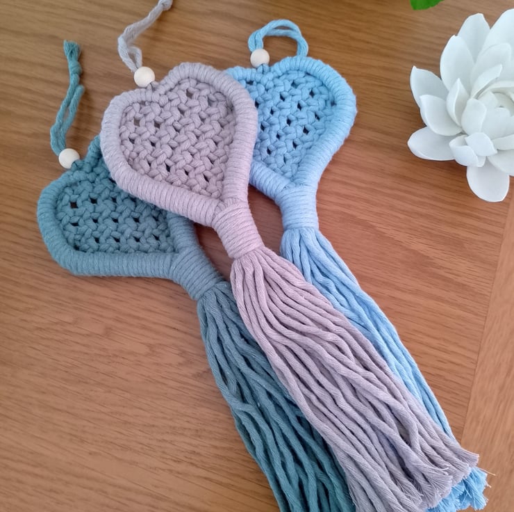 These pretty macrame heart wall hangings can be made in a variety of colours to suit your home. They are all made using 100% recycled cotton cord making them eco friendly too!