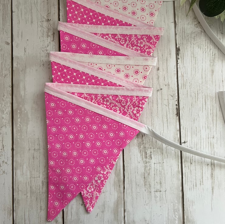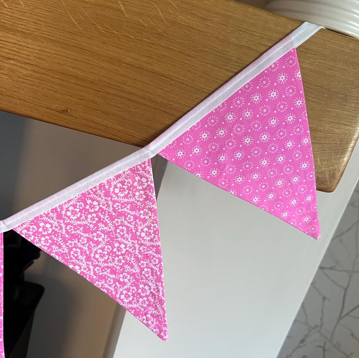 Made with 100% cotton fabric the bunting is double sided and pressed and features 4 patterns on repeat in a continuous run with no gaps.