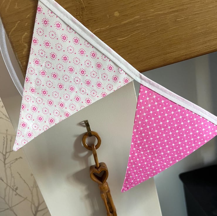 Handmade fabric bunting consisting of 8 flags.