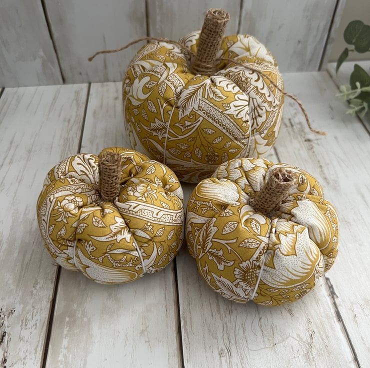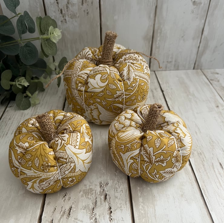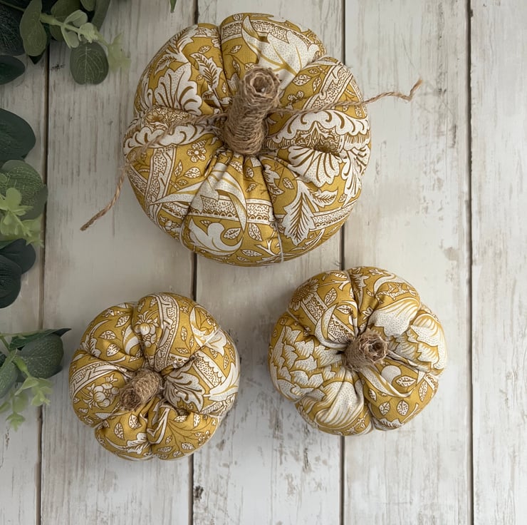Fabric Pumpkins: Set of 3 Medium & Small Pumpkin Decorations, William Morris