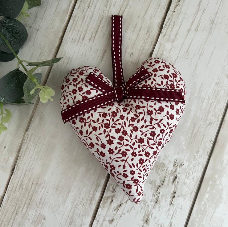 The decoration is a lovely dark red & white floral design finished with a co-ordinated grosgrain ribbon with bow hanging.