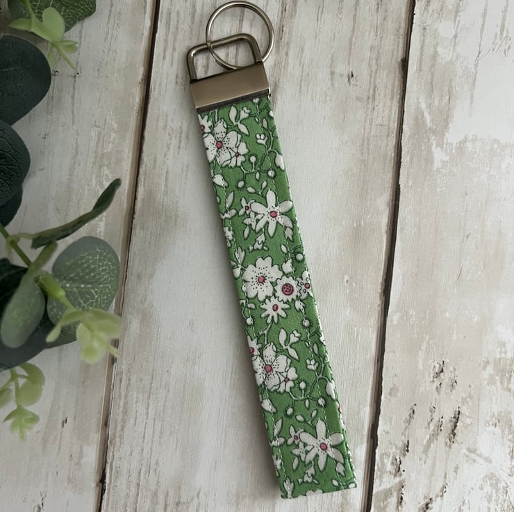 Handmade fabric key fob, wristlet, key chain, bag strap which keep your keys nice and safe and accessible. Wear on your wrist, attach to the inside of your bag, attach to your lanyard, use as a hanger - they have lots of uses. These key fob wristlets are made from 100% cotton fabric, using 4 layers of material and lined with a sturdy interfacing which keeps the straps nice and durable and comfortable if you wear them on your wrist.