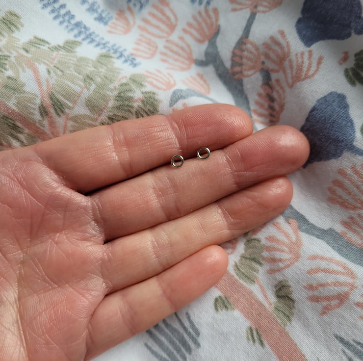 Tiny 4mm open circle stud earrings handmade from solid recycled sterling silver. Simple and minimalist in design, perfect for adults and teenager to wear. Although not suitable for small children as could easily swallow.
