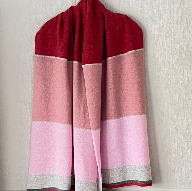 Generous knitted scarf, shawl and wrap a perfect cover up for the spring/summer season. This scarf, shawl and wrap is knitted using British spun lambswool. Can be worn as a shawl/cover up at summer events, or as a scarf for extra warmth, making it suitable all year round. Knitted by myself in UK on hand powered knitting machine, finished by hand to ensure the highest quality.