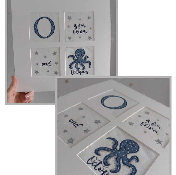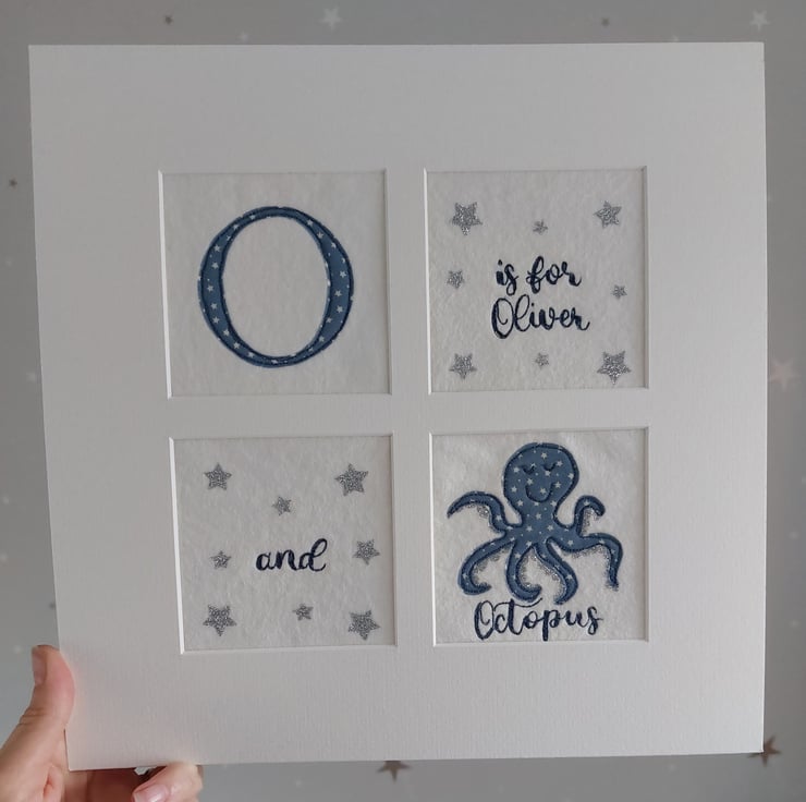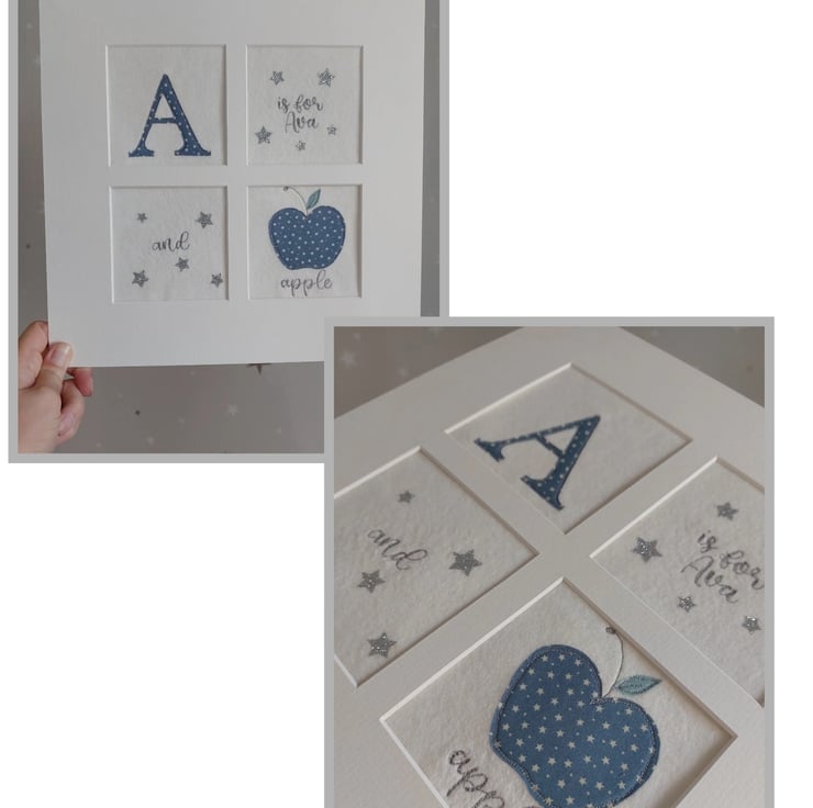 Made to order nursery wall art made by hand using applique and freemotion machine embroidery.