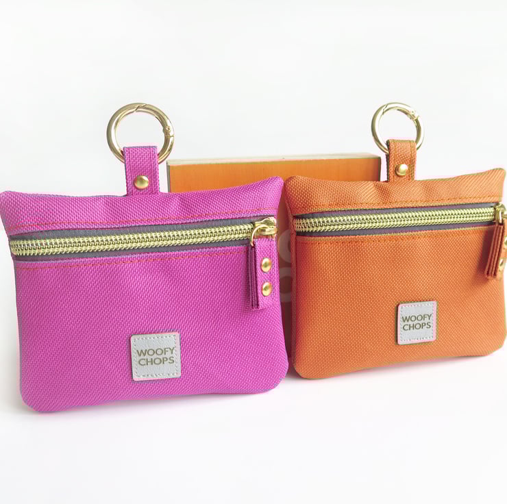 These dog treat bags, made with a gold zipper, are made from a waterproof canvas exterior, are perfect at keeping your treats super handy and your pockets crumb free! They are super lightweight, stylish and with an array of colours in the collection, you're bound to find one that matches your pups colour scheme. You'll feel lost when you leave home without it!