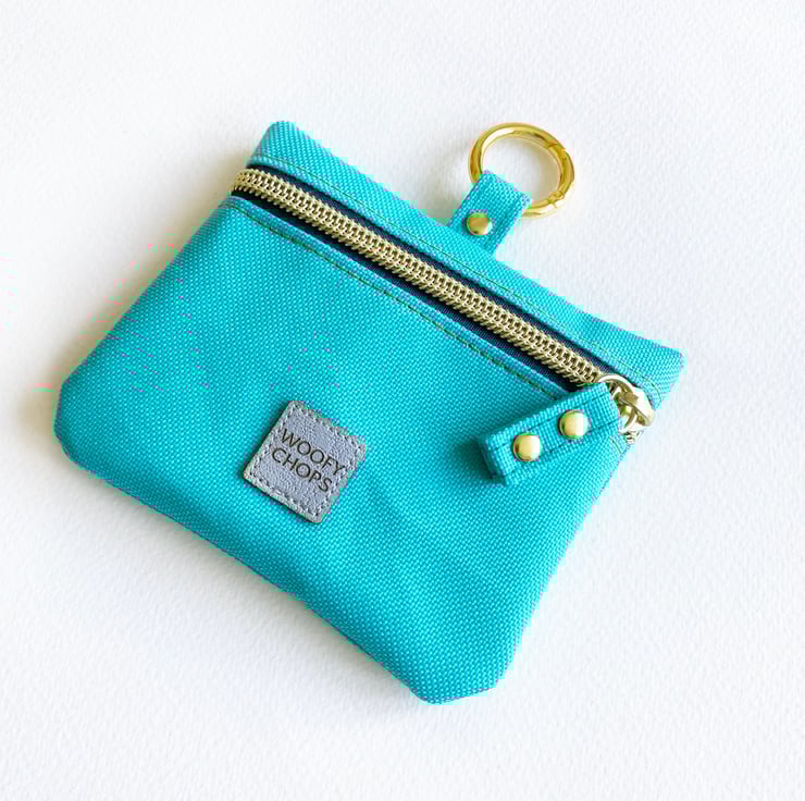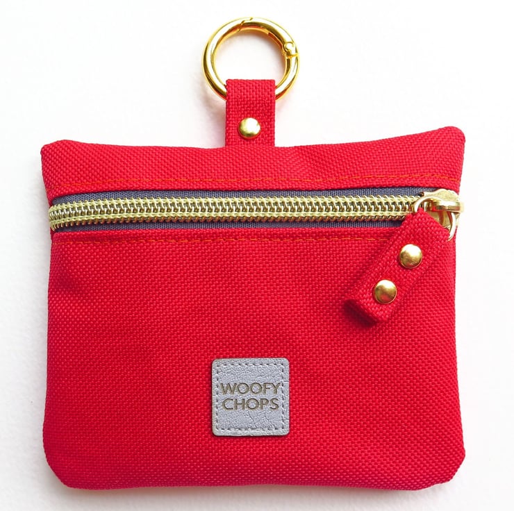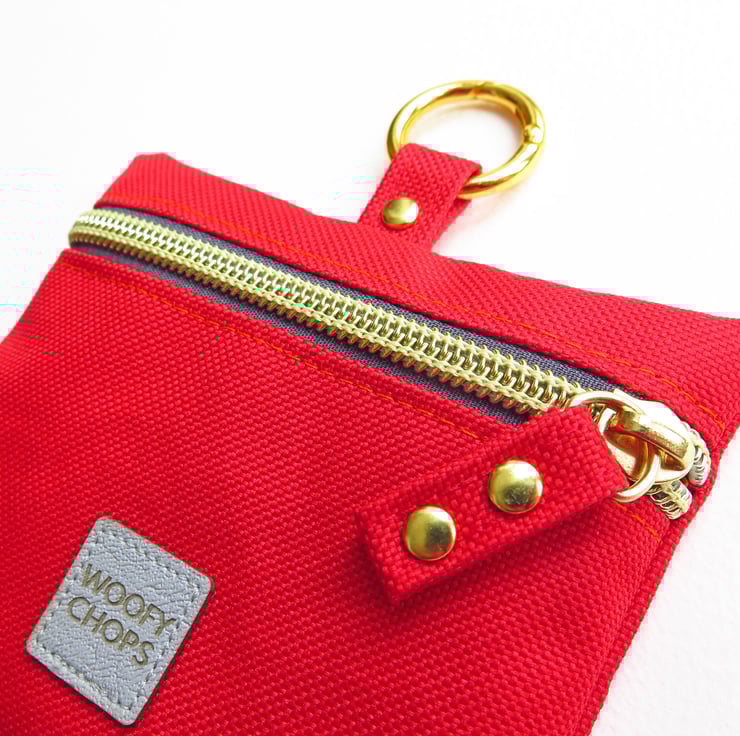 Please Note: For your dogs safety, Woofy Chops treat bags are not a toy. They are designed to only be attached to a responsible human, and are not to be attached to your fun-loving hound on the ground. Our four-legged friends like to run through the woods, charge through undergrowth, jump into streams and roll in muddy puddles; attaching a treat bag directly to your dog on their wonderful adventures could raise the risk of your treat bag (and your dog) getting caught or snagged on something. Please do check your treat bags regularly for wear and tear and usability of the product for your pet. No pet accessory is indestructible. It is the buyers responsibility to assess the suitability of Woofy Chops products for your pet. Woofy Chops is not responsible for any injury, loss or damage incurred whilst using any of it's range of products and accessories.