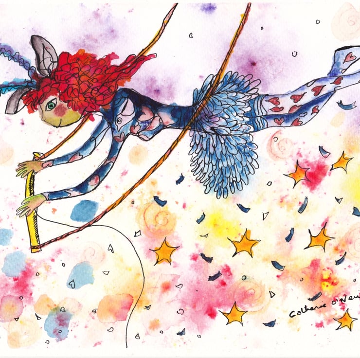 Circus Trapeze Artist - Original watercolour and ink drawing.