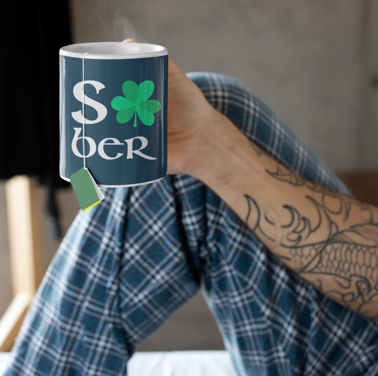 Drink to your sobriety with this beautiful Irish Shamrock design ceramic mug, perfect for your morning coffee, tea or a hot chocolate.