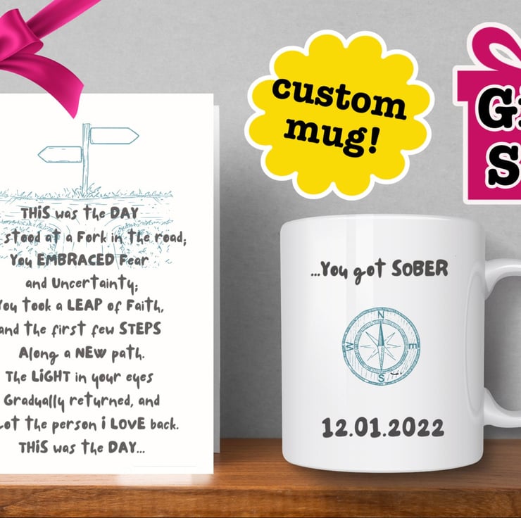 Perfect sobriety anniversary gift set, consisting of a beautiful quality sober card and a matching 11oz ceramic mug. Expresses perfectly what's in your heart and is guaranteed to make them feel loved, supported and celebrated on this very special occasion.