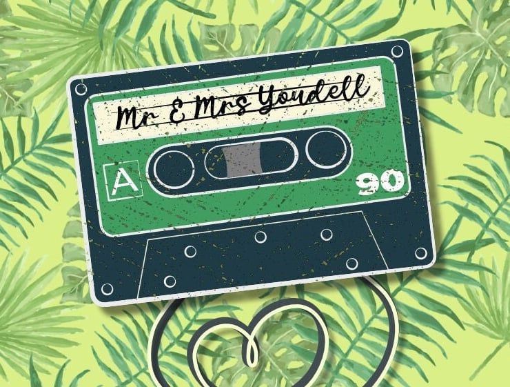 1. Put the couple s name, wedding anniversary date, ANDOR location on the tape cassette label (up to 2 lines of text numbers)