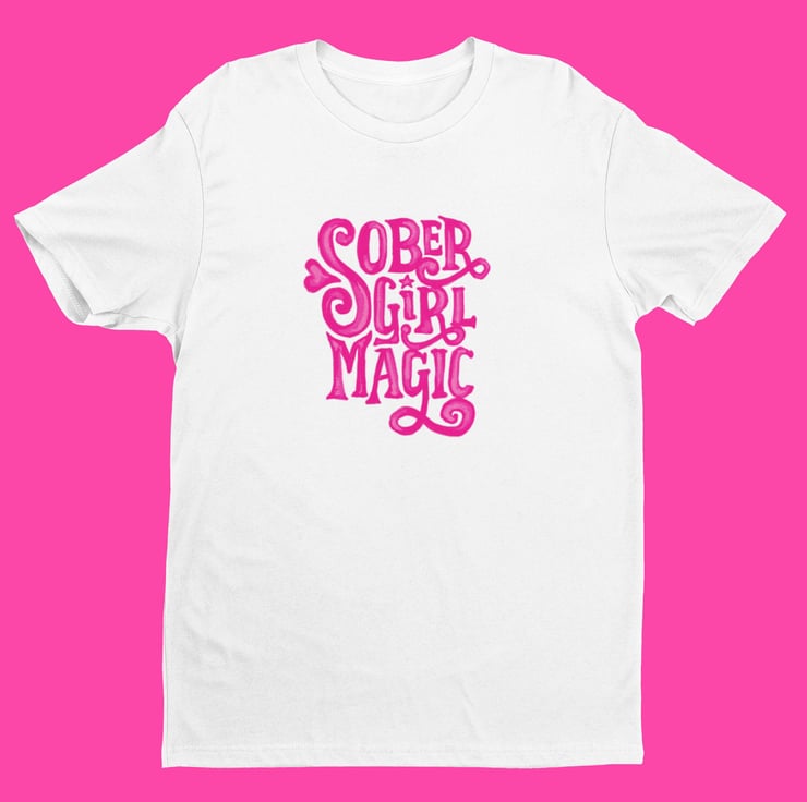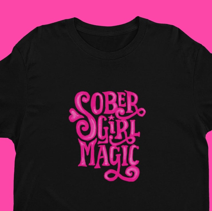 Unleash your Sober Girl Magic in this gorgeous sober shirt for women. This beautiful unique design in hot pink will pop wherever you go and grab the attention of your sober tribe! Sure to be a hit with your sober girl gang, this sobriety shirt is the perfect way to sprinkle a little Sober Girl Magic on your day!