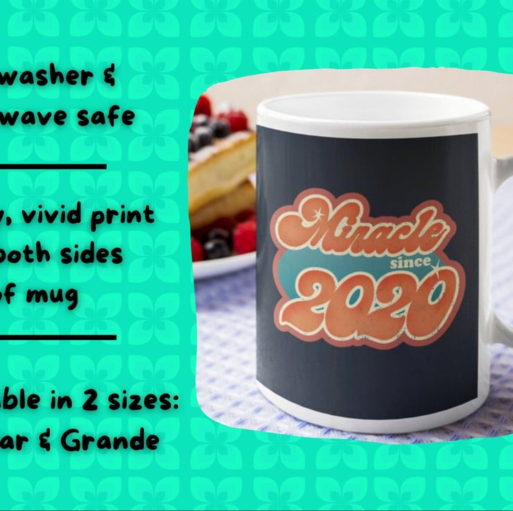 The mug is glossy white with a vivid print which retains its quality and lustre when used in both the microwave and the dishwasher.