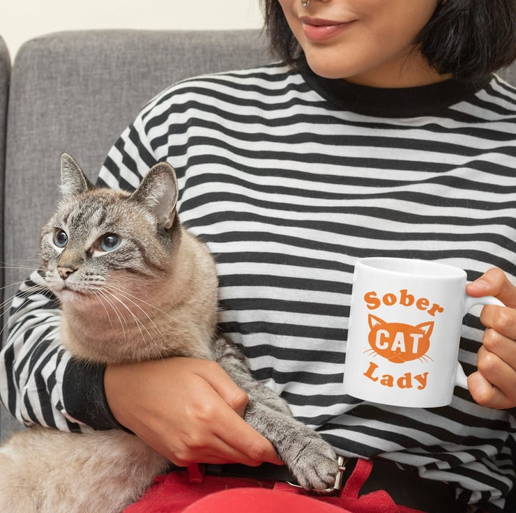Paw-fect sobriety gift set for the sober cat lover in your life, consisting of a sober card and a matching 11oz ceramic mug. They ll be purring and bursting with pride when they are presented with this sassy sober gift set, and you ll get the Best Soberversary Gift award in return!