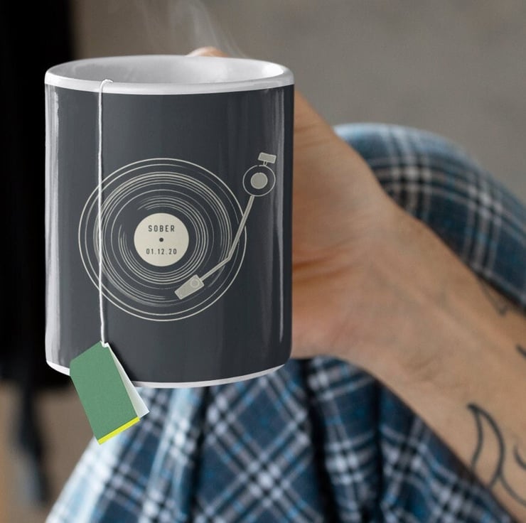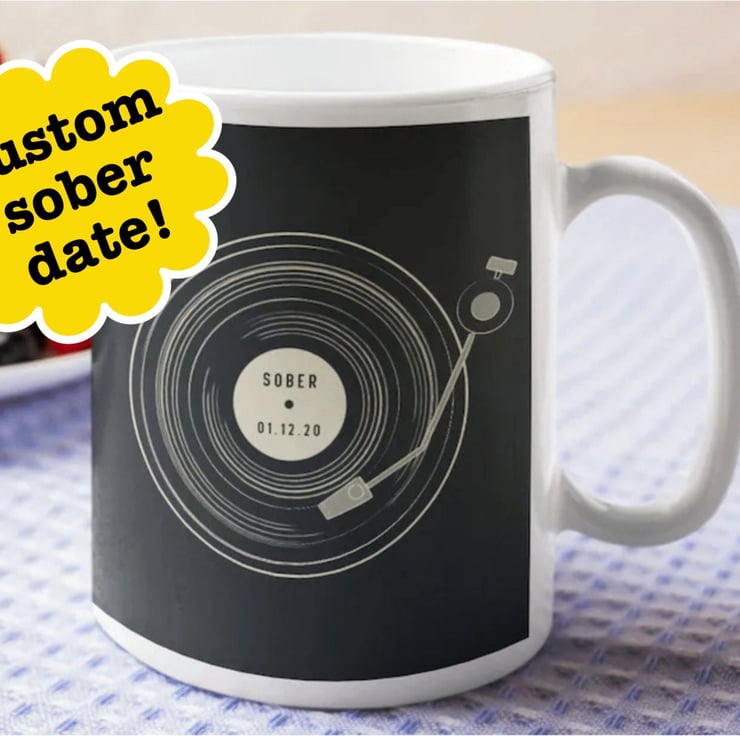 Customise the cool hand-drawn design of a vinyl turntable with your own or your loved one s all important sobriety date.
