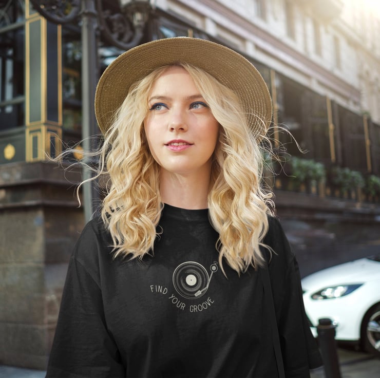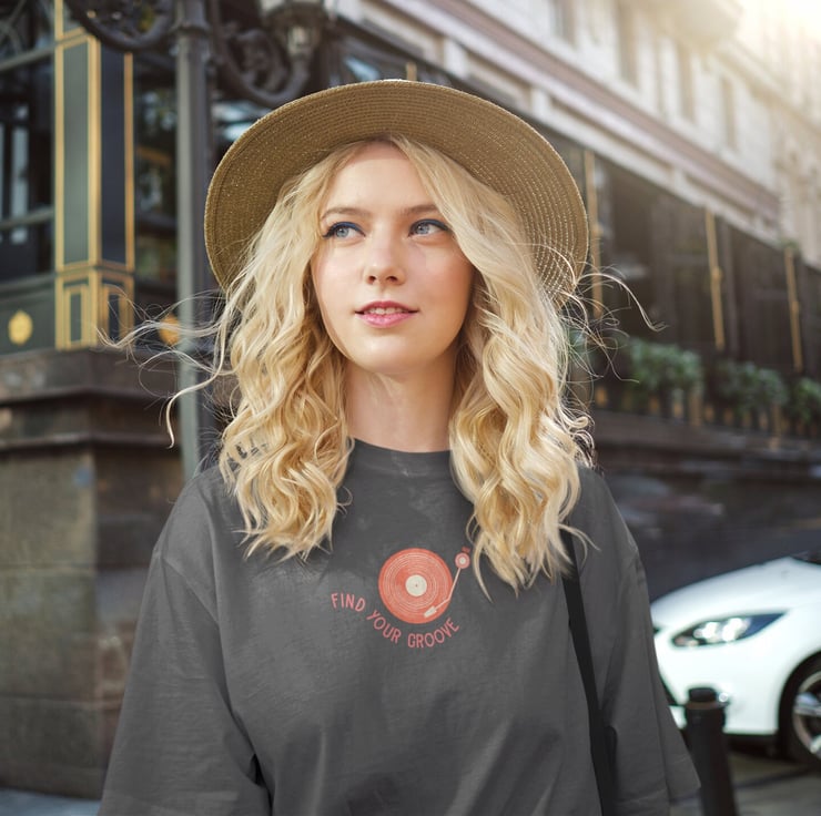 This cool hand-drawn retro design featuring a vinyl record on a turntable is sure to put a smile on your face, a spring in your step and groove in your heart! Know what I'm saying? This, combined with the soft cotton and trendy relaxed fit will soon make this your favourite shirt!