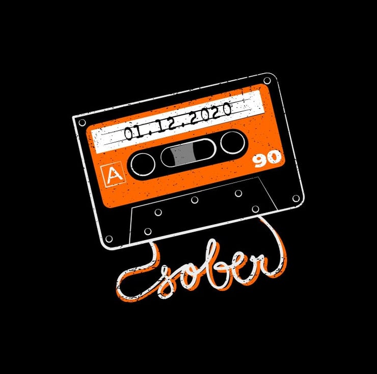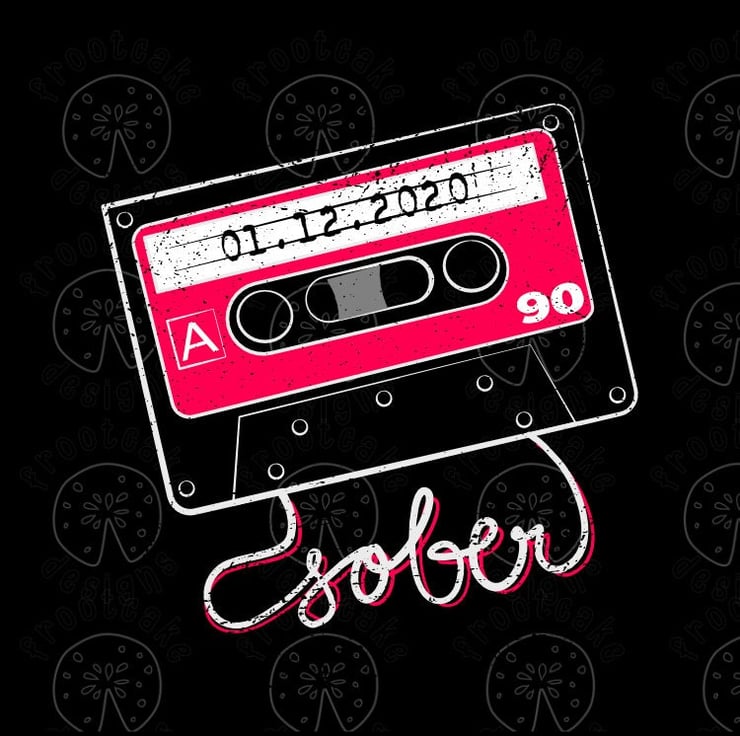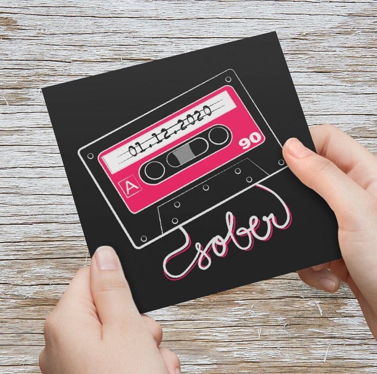 Wow your loved one on their sober or clean anniversary with this personalised sobriety date greetings card of a tape cassette.