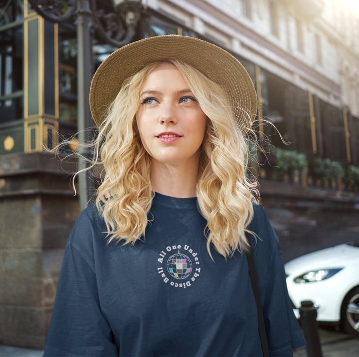 This cool hand-drawn, design featuring a disco ball is sure to put a smile on your face, a spring in your step and groove in your heart! Know what I'm saying? It s deliberately distressed and slightly washed out to give it that trendy retro look.