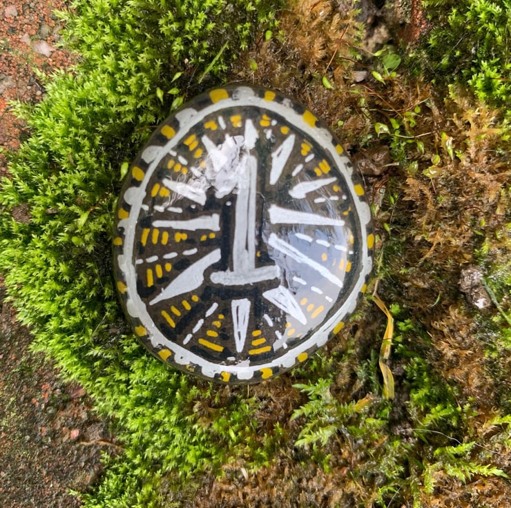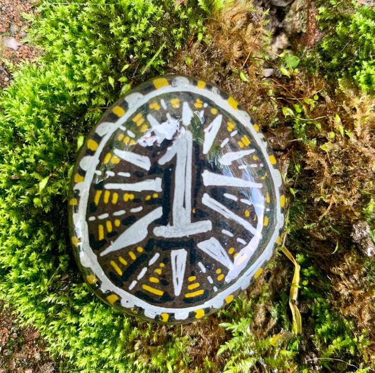 These stones are designed and hand painted by me and are varnished to protect them, keeping the design clear and lustrous, and very tactile! You r loved one can carry it with them as a reminder of your support or display it.