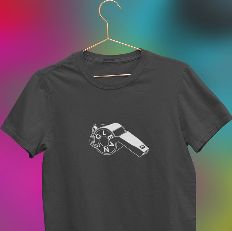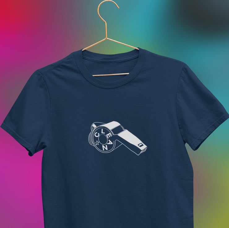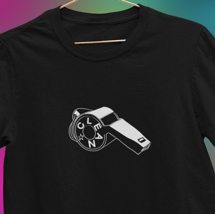 Ready to rave clean and sober? Make a stylish statement about your clean living lifestyle with this graphic unisex t-shirt featuring a hand-drawn whistle with the word CLEAN in the middle. Also available in SOBER .