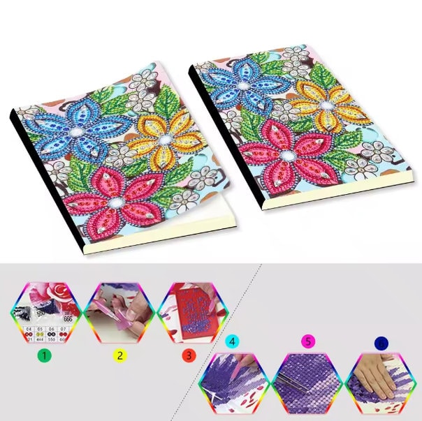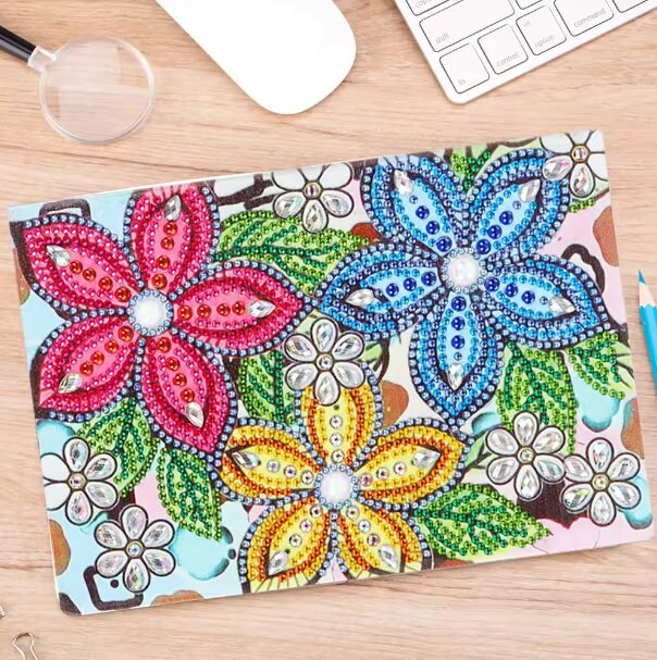 5D DIY Diamond Art Painting Flower Notebook DIY Rhinestone Embroidery Diamond Kit for Beginners and Gifts