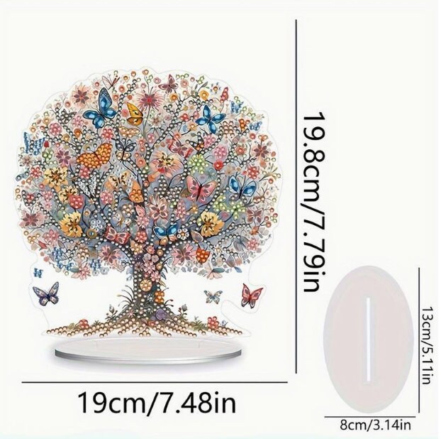 5D DIY Floral Butterfly Tree Diamond Painting Art Kit Embroidery Rhinestone Acrylic Table top Ornament Decoration