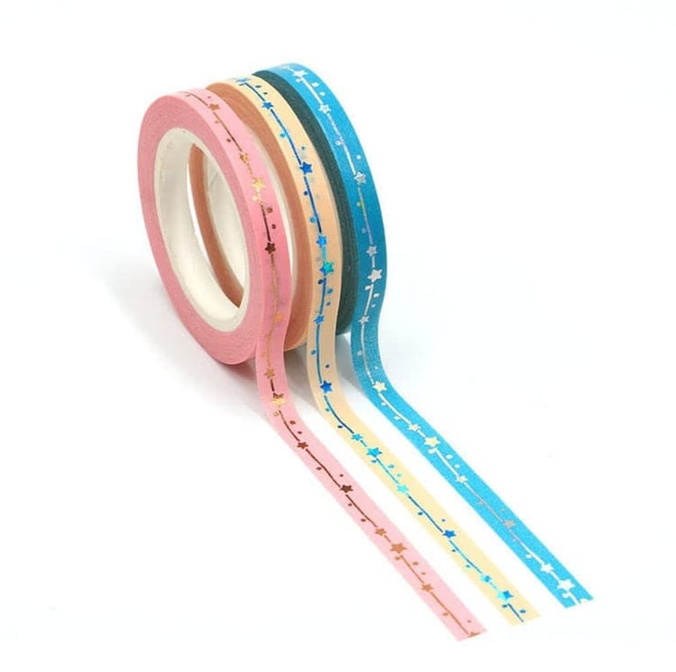3 Rolls Pink Blue Yellow Shooting Stars Washi Tape 5mm Gold Foil Embossing Each Roll is 10 Meters Eco Friendly Bullet Journal