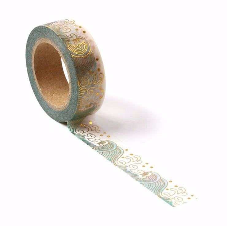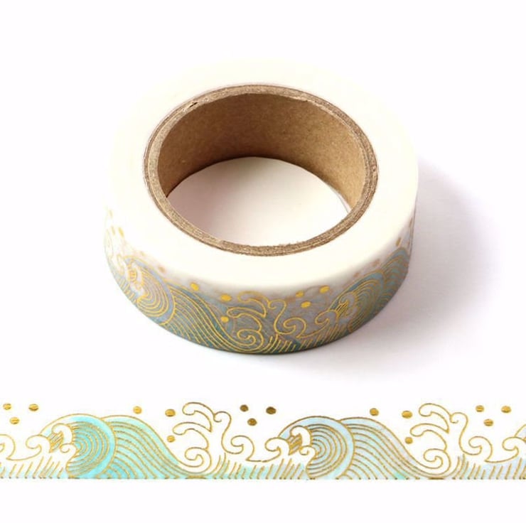 Ocean Sea Waves With Gold Foil Embossing Decorative Washi Tape 15mm x 10m