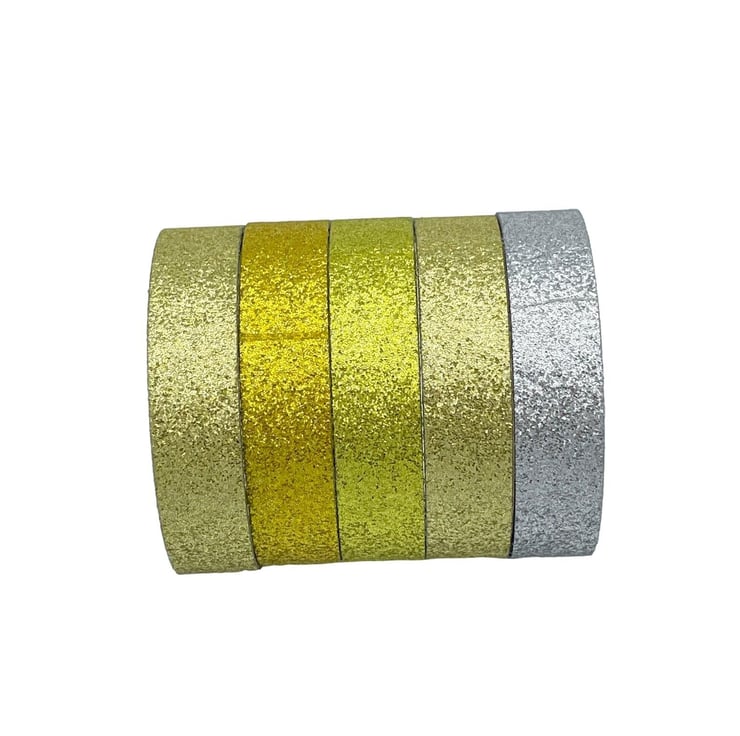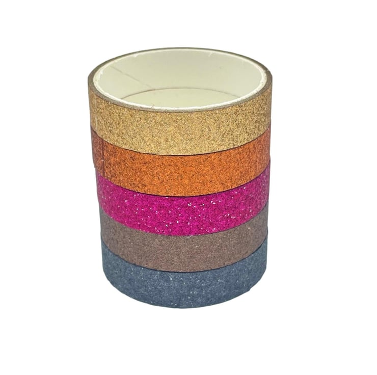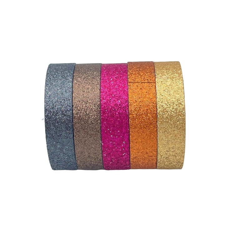The set includes 5 co-ordinating colours of washi tapes in glitter, offering a lots of choices to decorate any crafting project