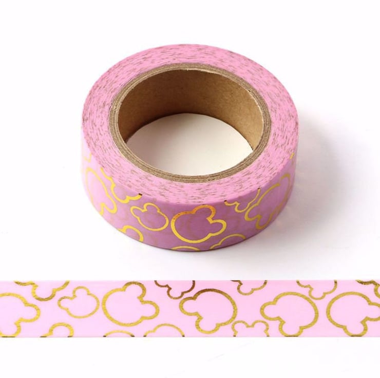 Mouse Gold Foil Embossed Pink Washi Tape Decorative Self Adhesive Masking Tape 15mm x 10 Meters