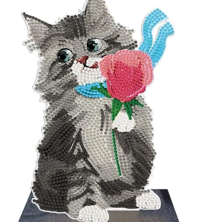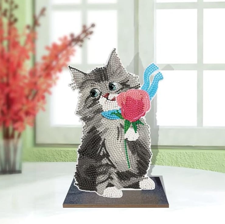 5D DIY Cute Kitten with Yarn Diamond Art Kit Crystal Embroidery Rhinestone Wooden Table top Decoration