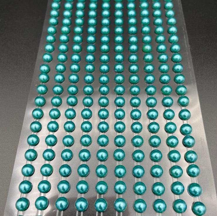 Beautiful Small Round Pearlised Self Adhesive Teal Green Beads