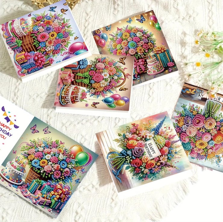 6pcs DIY Diamond Painting Greeting Card Kit Flower Bouquet Birthday cards Diamond Art Kit