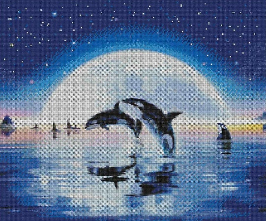 5D DIY Playful Killer Whale Orca Pair Diamond Art Painting, Round Rhinestone by Numbers for Arts and Crafts & Wall Decor. 30cm x 30cm