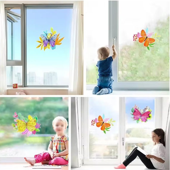 4pcs 5D DIY Assorted Colourful Butterfly Diamond Art Craft Stickers by Numbers Kit for Adults Rhinestone Craft Mosaic Stickers