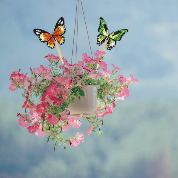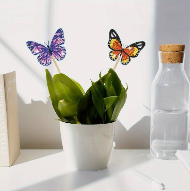 8pcs 5D Butterfly Diamond Art Plant Pot Stakes DIY Diamond Flower Pot Sticks