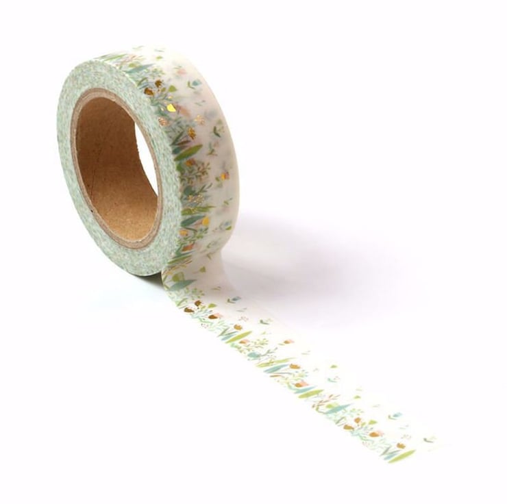 A beautiful wild flower meadow washi tape with gold foil embossing.