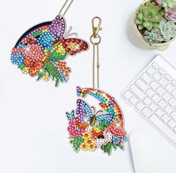 5pcs 5D DIY Assorted Colourful Rainbow Butterfly Diamond Art Keyrings by Numbers Kit for Adults & Kids,Double Sided Rhinestone Craft Pendant