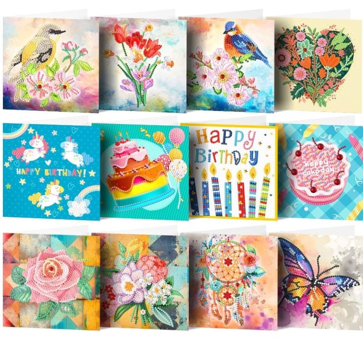 12pcs 5D DIY Diamond Art Birthday Thank you Greeting Card Kits For Adults - Diamond Painting Greetings Card Kit Decoration