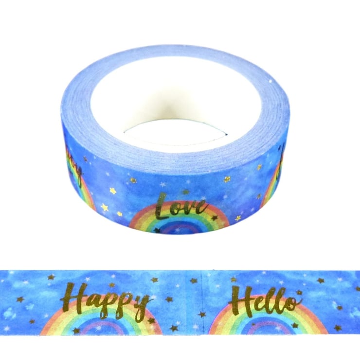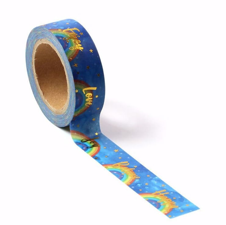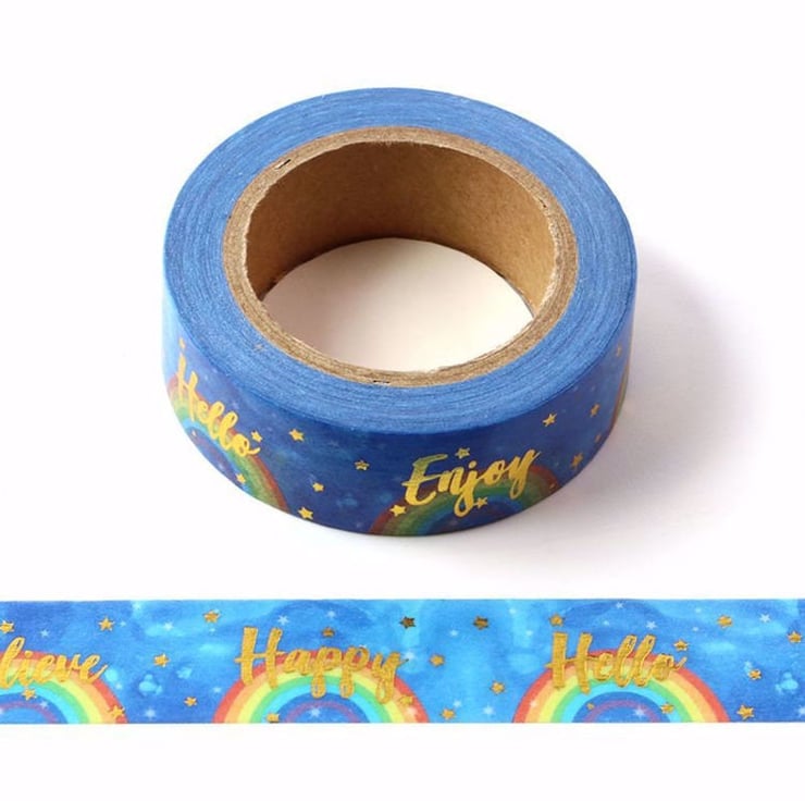 Rainbow Foil Washi Tape With Inspirational Words. Words and stars are in gold foil Quality acid free Rainbow Washi Tape With Inspirational Words and Stars in Gold Foil