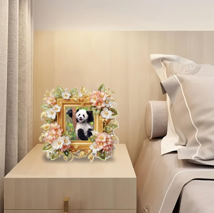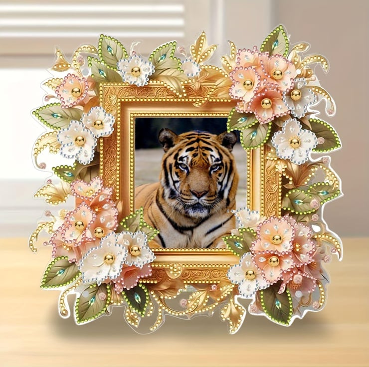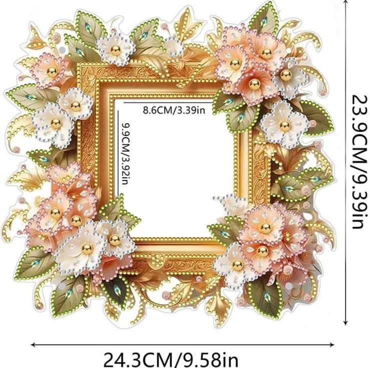 5D DIY Diamond Painting Floral Photo Frame Diamond Art Kit Crystal Embroidery Rhinestone Acrylic Table Top Frame Decoration Approx 24cm x 24cm