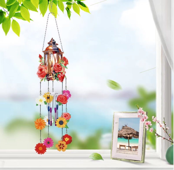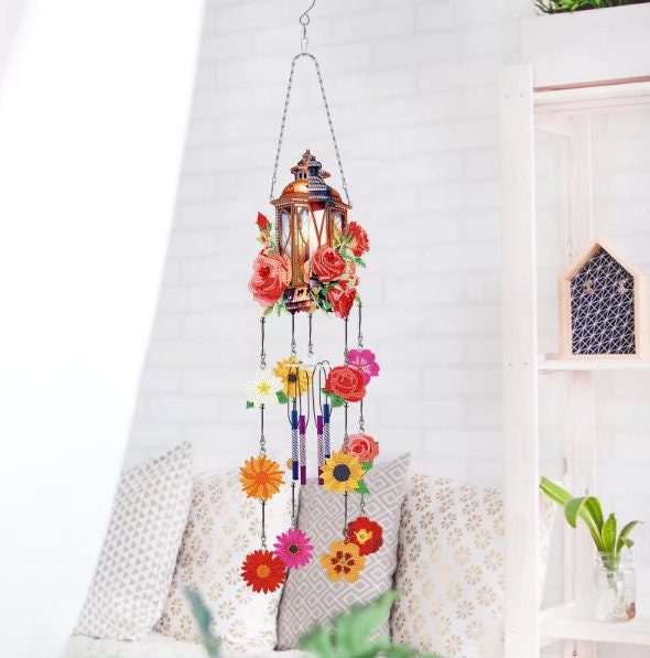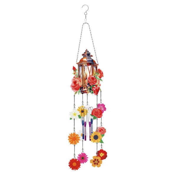 5D DIY Floral Vintage Lantern Windchime Diamond Art Kit Crystal Embroidery Rhinestone Acrylic Decoration Approx 73cm x 15cm
