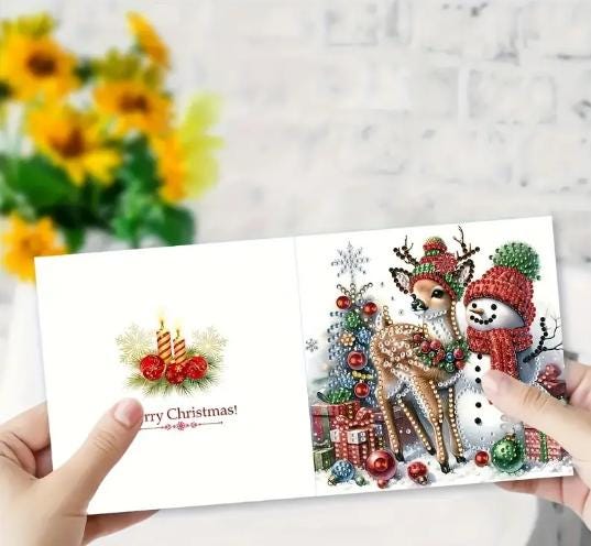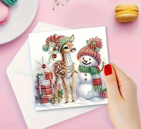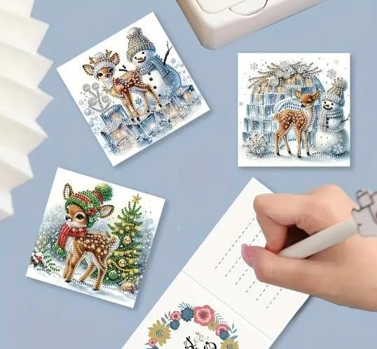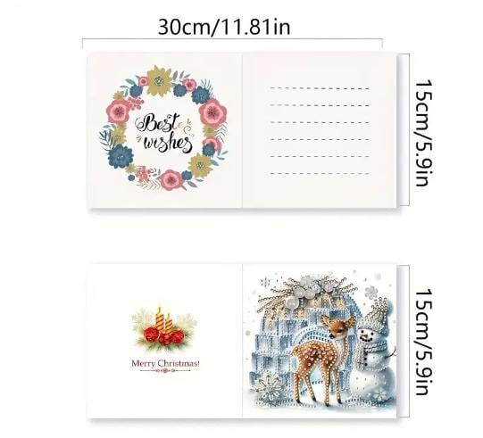 Comes with everything to make these Cute Christmas Cards including cards, diamonds, tray for diamonds, diamond art pen, wax square and envelopes.