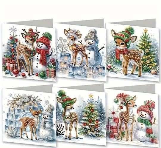 6pcs 5D DIY Diamond Art Reindeer and Snowman Kits For Adults - Diamond Painting Christmas Greetings Card Kit Decoration