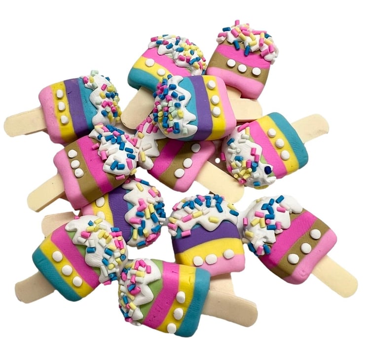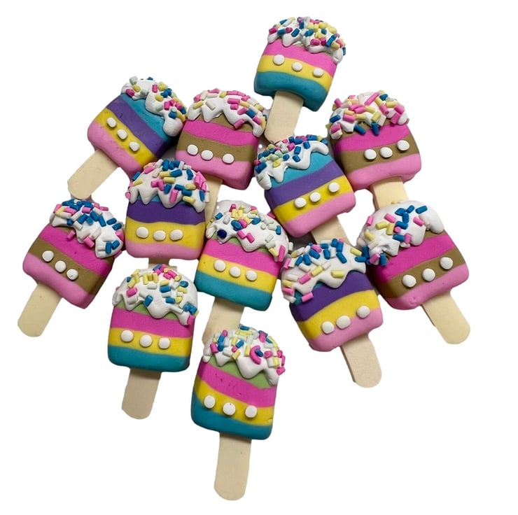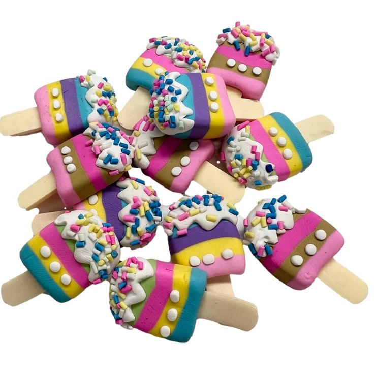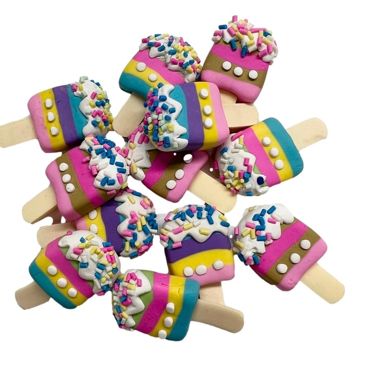 12pcs Kawaii Multi Coloured Popsicle Polymer Clay Flatback Embellishments Cabochons for Crafting